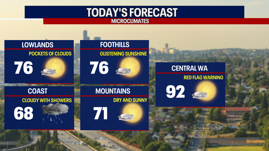 In parts of Central and Eastern Washington, fire danger is elevated today. Red Flag Warnings are in effect.