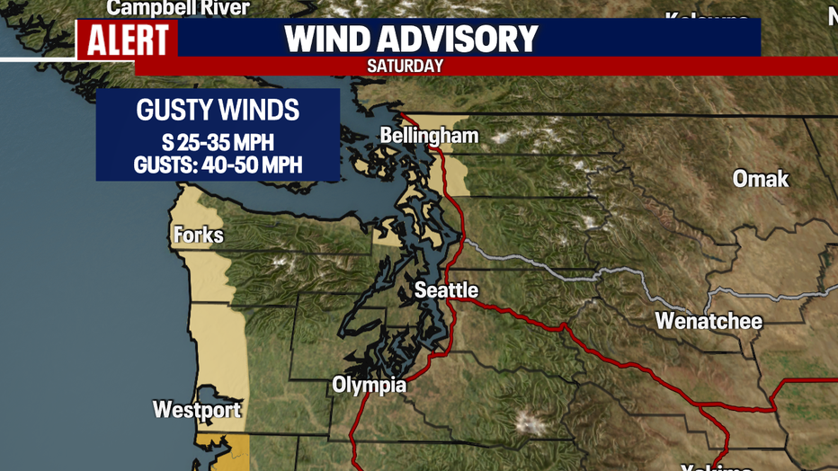 Winds will also impact the area with a Wind Advisory in effect Saturday morning through evening for the north interior and the coast. Wind gusts between 40-50mph.