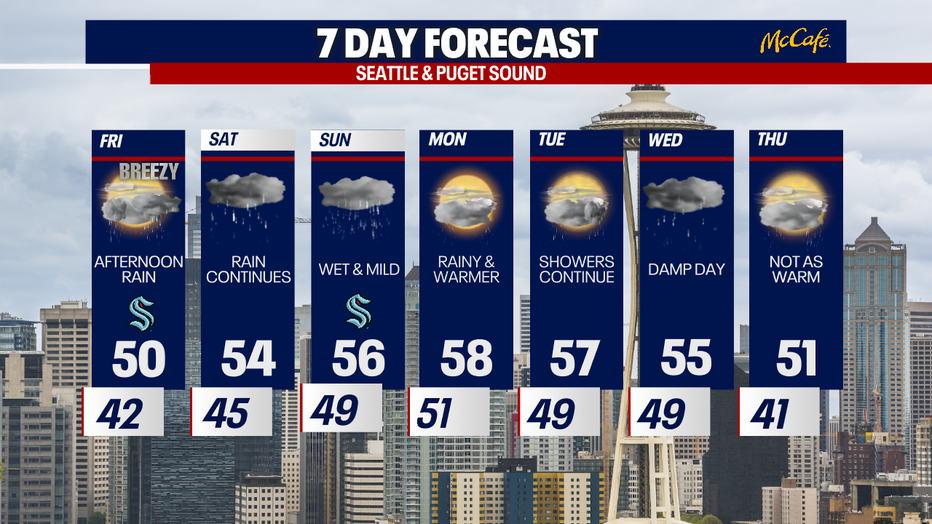 SEATTLE - Scattered rain remains around Western Washington Thursday evening and it's forecasted to dry out by overnight tonight.