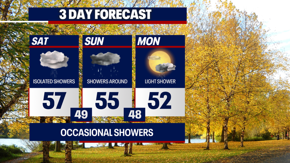 SEATTLE - While we're tracking far less rain in Seattle this weekend compared to the deluge of moisture we endured Thursday and Friday, you'll still be dodging light showers here-and-there.