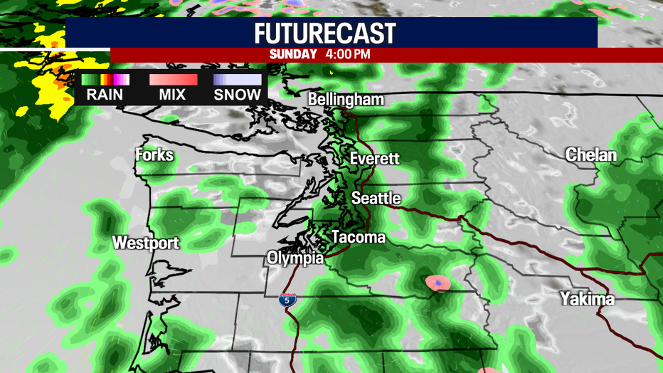 There will be a slight uptick in shower chances on Sunday. On top of the damp pockets, the gray skies will be consistent in the Seattle area through tomorrow.
