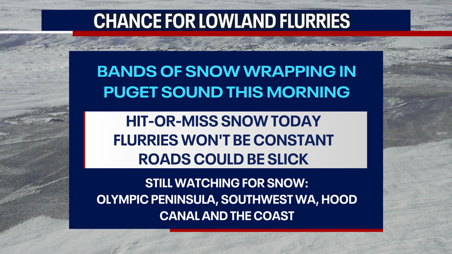 SEATTLE - After an active morning of weather across Puget Sound, we're tracking pockets of snow for the rest of the day. Temperatures will plunge in a major way overnight.