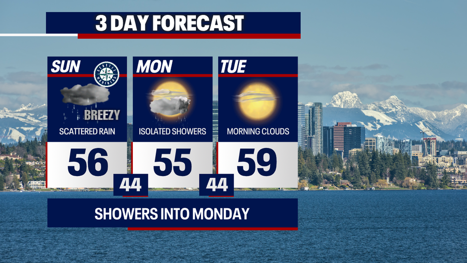 SEATTLE - For today, you can expect gray skies, spotty glimpses of sunshine, slightly breezy conditions and isolated to scattered showers. There's a better chance for rainier weather tonight.
