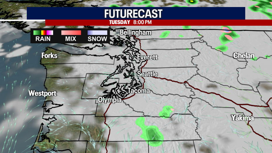 Seattle - Showers will continue through most of the work day Tuesday as a system pushes south through Western Washington.