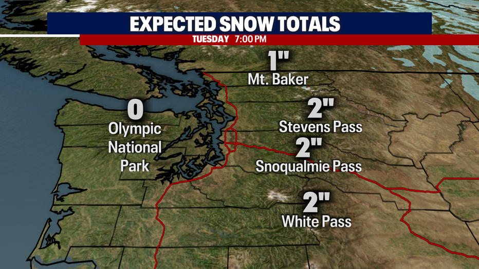 As cooler air continues to filter in, it will help lower our snow levels to around 2000-2500'. We have a shot at seeing some light snow on Monday and Tuesday, then another chance late in the week.