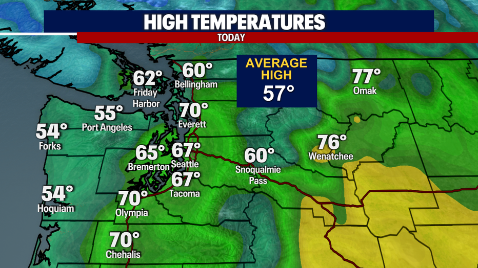 SEATTLE - What a beautiful day around Western Washington! We saw a mix of sun and clouds with breezy, mild temperatures. Many spots warmed into the upper 60's, with few spots even making into the low 70's.