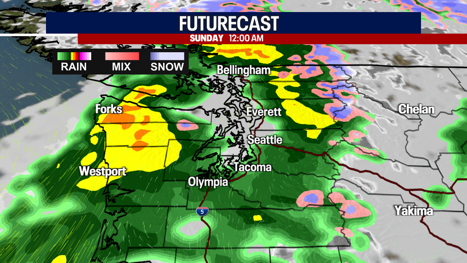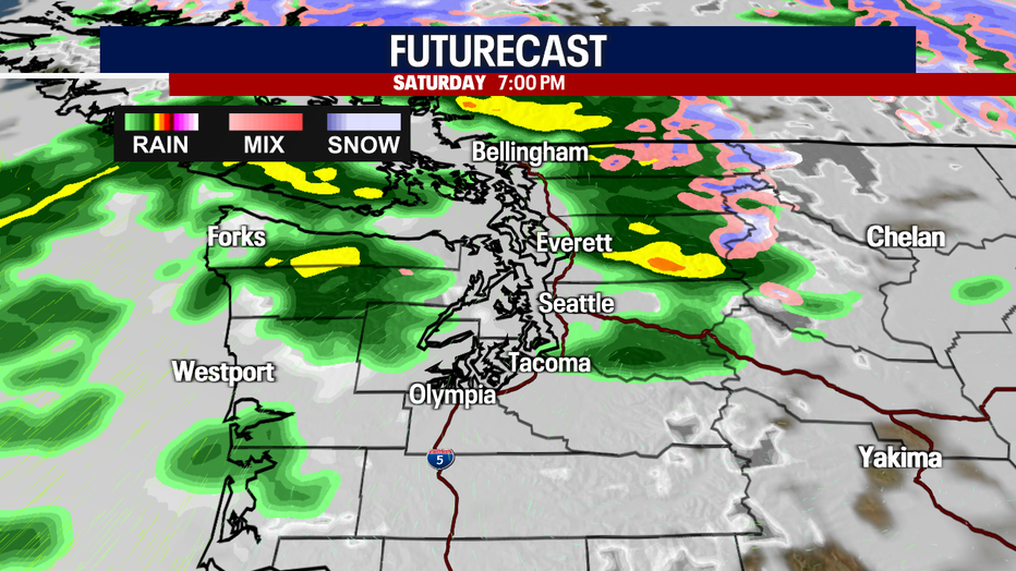 SEATTLE - Mostly dry weather will linger in Seattle through Saturday afternoon, but scattered rain will fire up into early Sunday morning. We're here to break down the timing in the Emerald City — and which other communities in Western Washington have the best chance for rain this weekend.