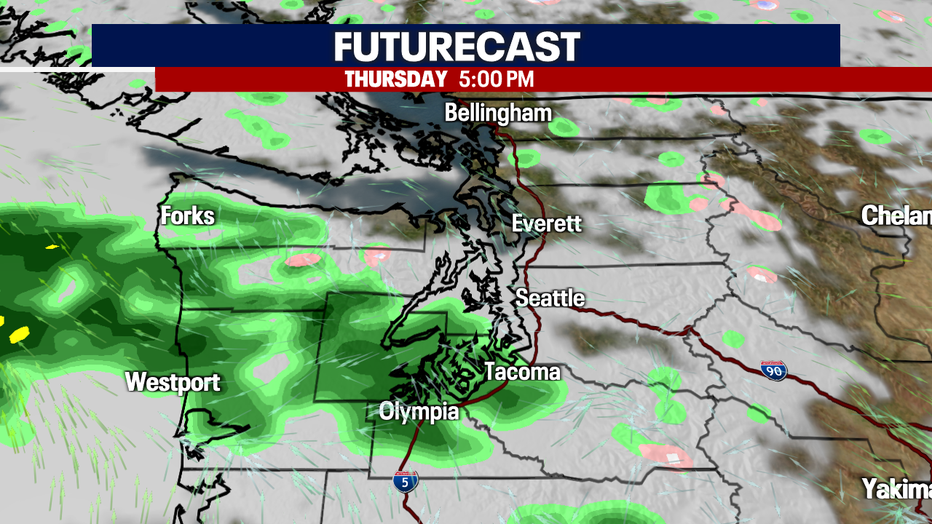 Showers will return later this evening for the I-5 corridor with more rain overnight. Onshore flow will continue into Thursday.