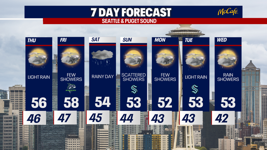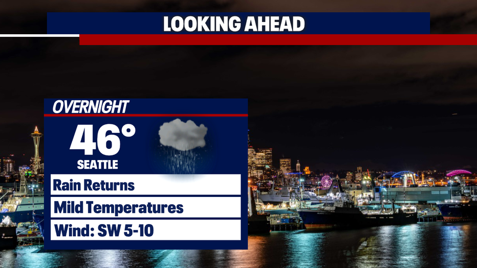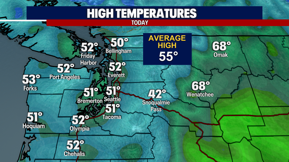 SEATTLE - The clouds and cooler temperatures have returned to the Pacific Northwest after a beautiful warm stretch of weather. Highs today topped out in the low 50s with plenty of cloud cover.
