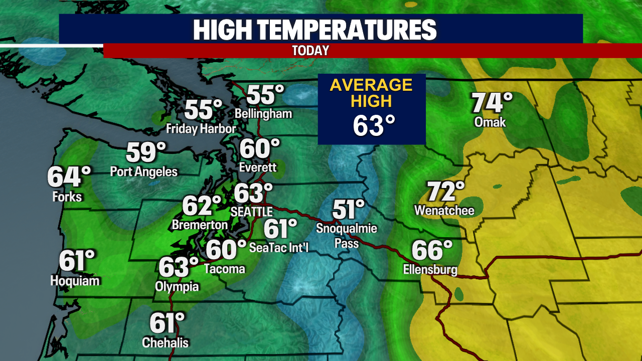 It was another seasonably cool Friday with highs in the mid to low 60s. (FOX 13 Seattle)