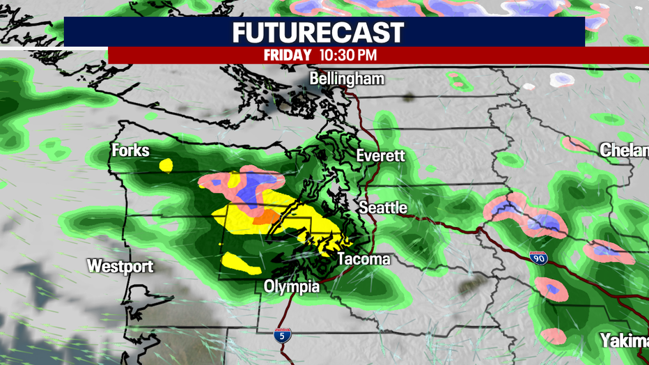 SEATTLE - Keep your rain gear handy this weekend as we will be dodging a few showers throughout the weekend. Rain will mostly be light, but locally, heavier showers will be possible overnight Friday into early Saturday.