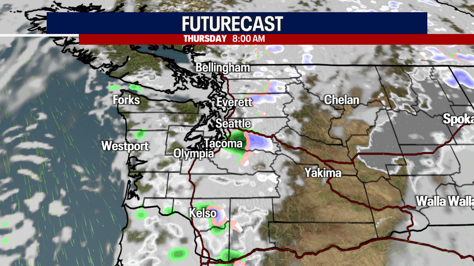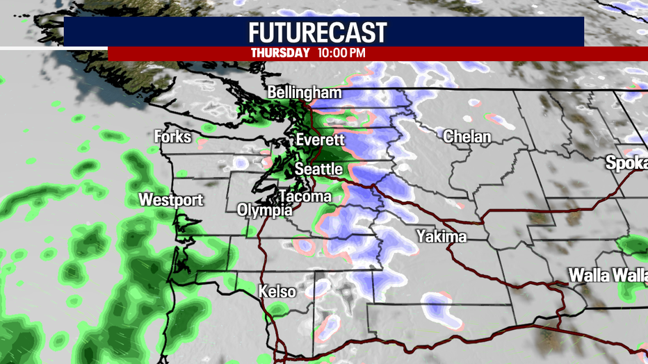 Rain will return late Thursday with more showers and even a few inches of snow for the Cascades.