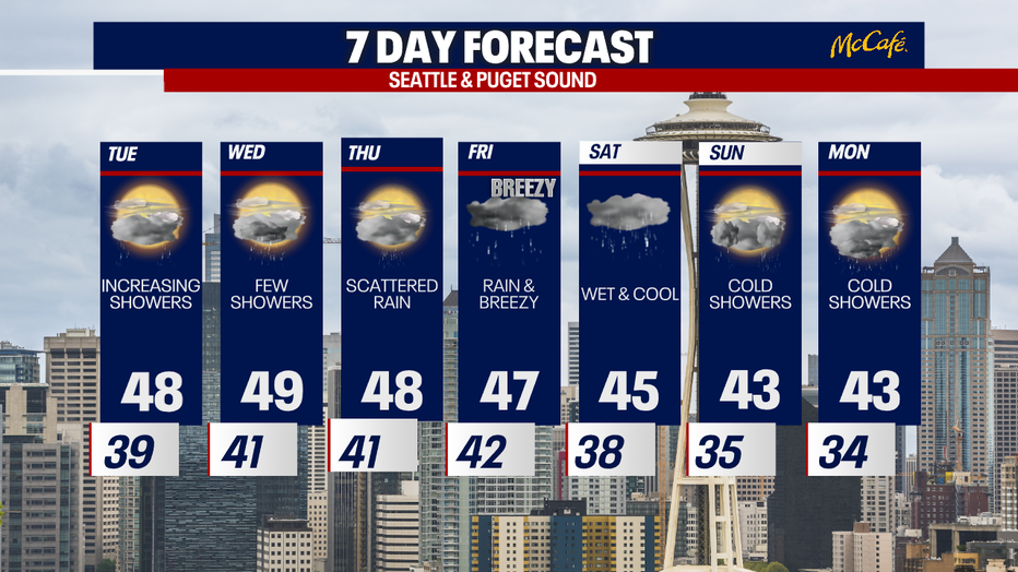 Seattle weather: Showers return Tuesday, breezy along the coast