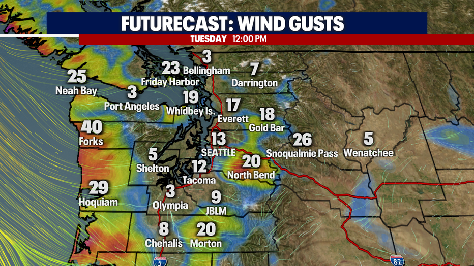Winds will pick up along the coast as well, wind gusts between 20-30mph possible throughout the day. A little breezy through the Cascade Passes as well.