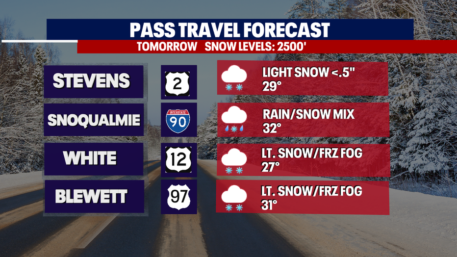 If you are heading over the passes, don't expect any major snow storms through at least Thursday. A mix of rain and snow for Snoqualmie Pass and light snow for Stevens.