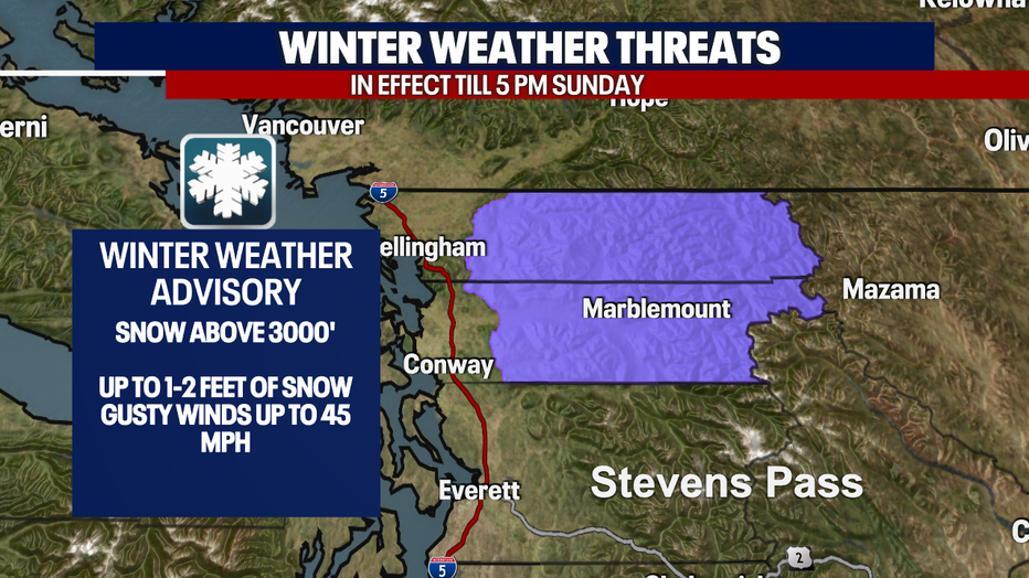With the heavy snow and gusty winds around Mount Baker, there is a Winter Weather Advisory posted for the North Cascades through most of Sunday.