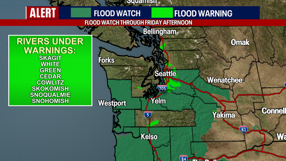 SEATTLE - Thousands of homes are without power in western Washington after a one-two punch of severe weather in our area. While minor to moderate river flooding is still ongoing, the worst of it is behind us, and the amount of widespread rain will not be as high as what we have seen recently.