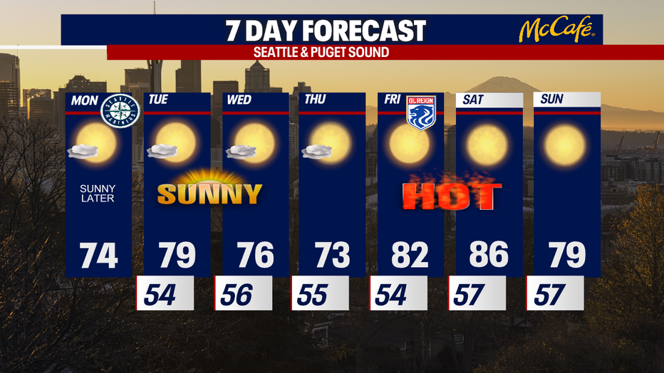 By Saturday, highs could jump to at least the mid 80s in Seattle. It could be even hotter over the South Sound and the Southwest Interior. Stay tuned for updates!