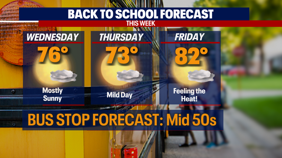 A lot of students are heading back to the classrooms this week (if they haven't already). Check out this new back-to-school forecast: temperatures at the bus stop will range in the mid 50s. Highs will soar into the 70s Wednesday and Thursday before boosting to the 80s by Friday!