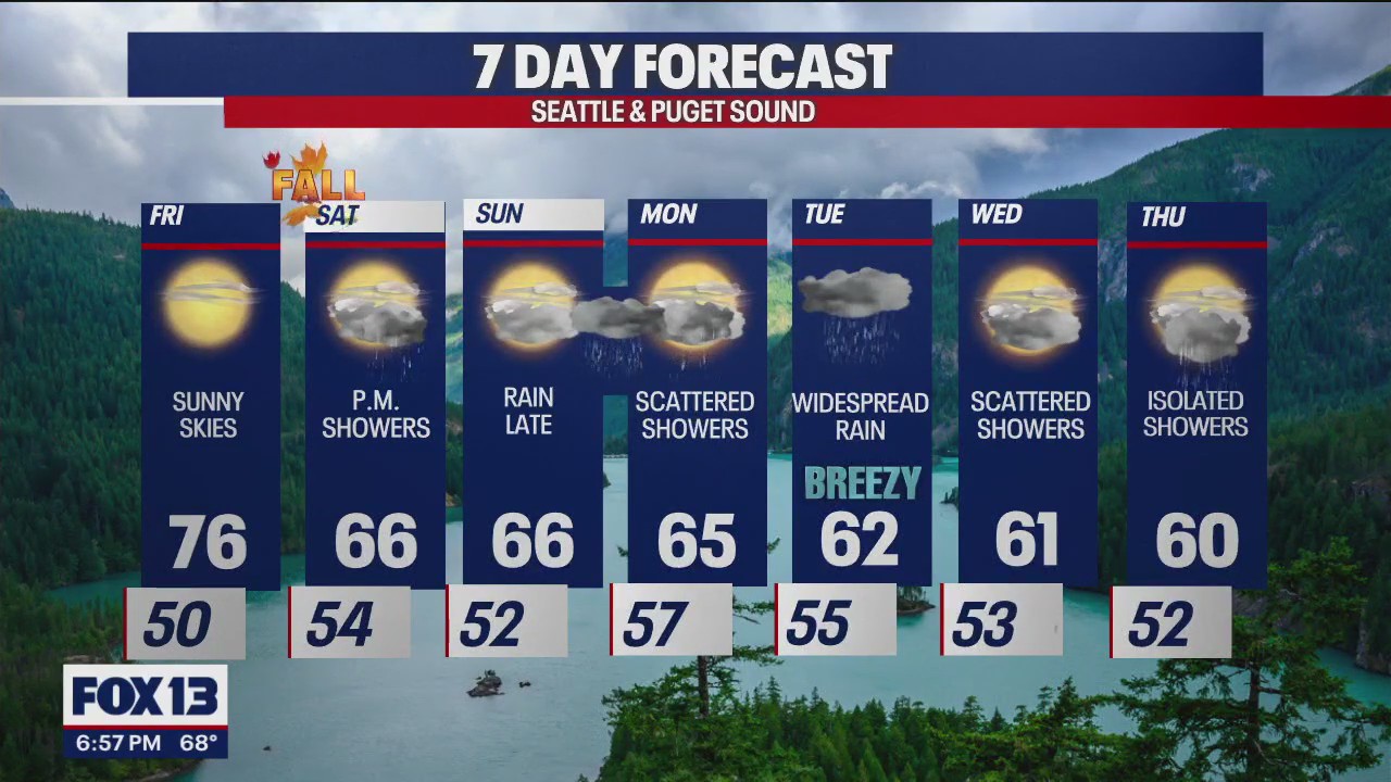 Friday will be a sunny day in the mid 70s before we see rain coming in and temperatures in the mid 60s for the next few days.