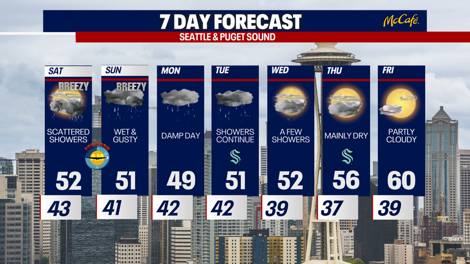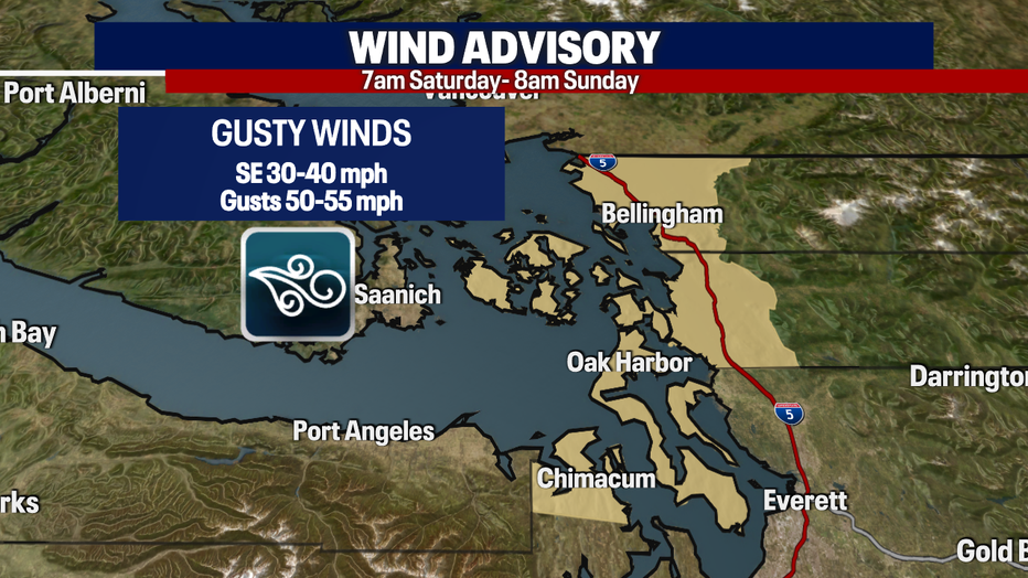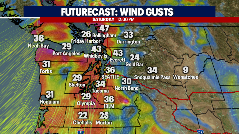 Winds will start to pick up Saturday with the next system moving in, bringing wind gusts around the Puget Sound between 30-35 mph.