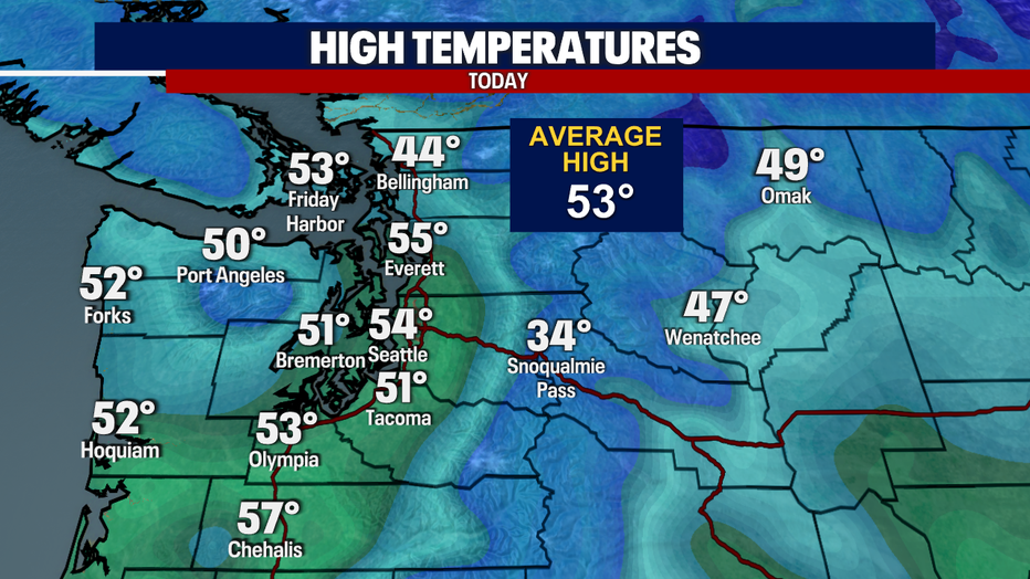 Mostly cloudy skies today with mild temperatures for Western Washington. Highs today were slightly above average.