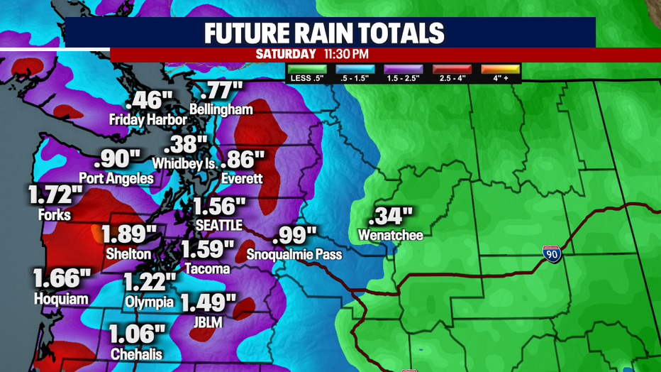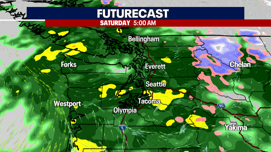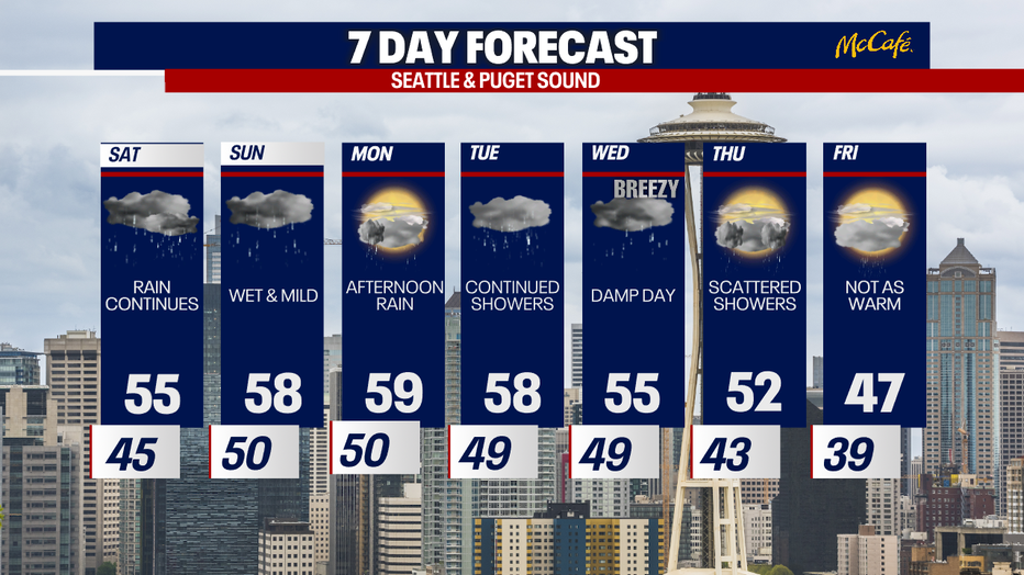 Rain will settle in for the next several days with a short break Sunday night into part of Monday. By the end of next week, cooler air will return, bringing temperatures back closer to average and snow levels back down to nearby passes.