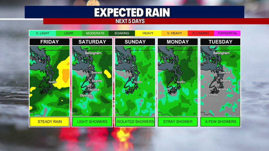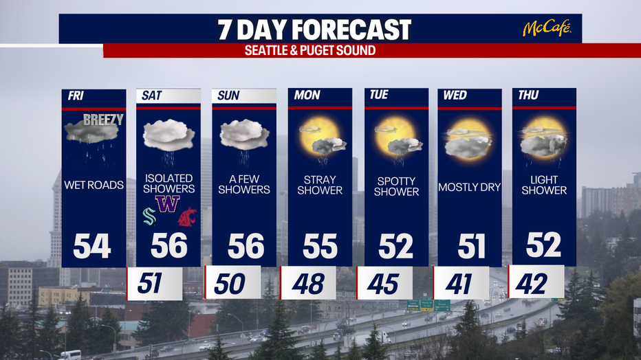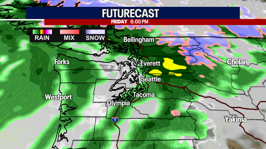 Friday will start wet, with heavy rain in central Puget Sound and snow at higher mountain passes.