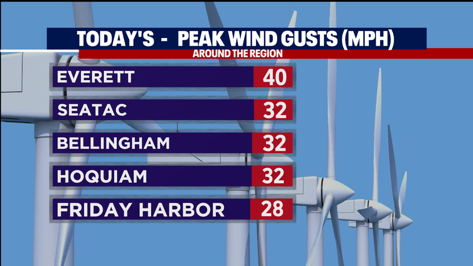 Seattle - We made it to the weekend! After some Friday showers highs topped out in the mid 40s. Winds were gusty for many sports too. Some of us, like SeaTac International Airport saw winds kick up to 40mph.