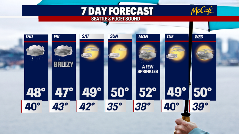 SEATTLE - Happy mid-week all! Wednesday was another chilly one! Highs only topping out in the upper 30s to low 40s. Normal is near 50 for this time of year.