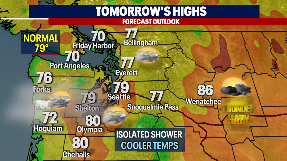 SEATTLE - We saw another day with temperatures well above average for Puget Sound. The airport hit 85 with even warmer highs for areas to the south.