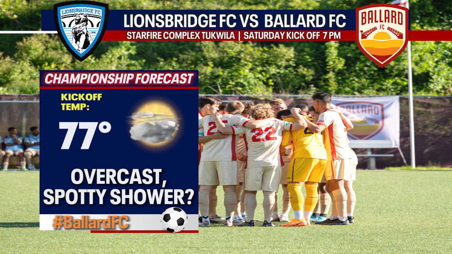 And if you're heading to Starfire Complex tomorrow to cheer on Ballard FC in the USL2 Championship match at 7 pm plan for overcast skies with a slight chance of a few spotty showers. #GoBallardFC