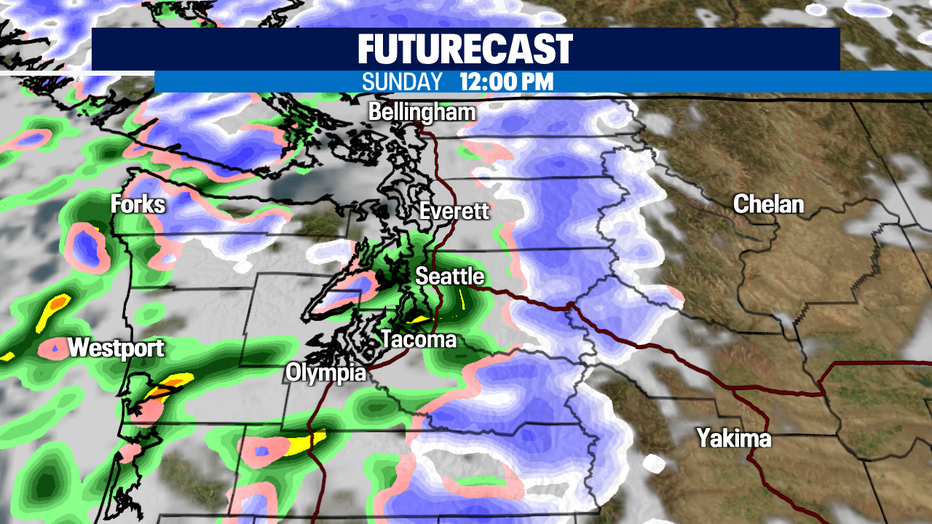 SEATTLE - We're tracking active weather today. In fact, we've issued a Weather Alert Day due to the possibility for significant mountain snow and horrible pass travel. On top of the winter weather over the higher elevations, there could be an isolated thunderstorm today (mostly over the coast). A Flood Watch is also posted for Mason and Lewis Counties; that watch continues through tonight. A Flood Warning is now in effect for the Skokomish River in Mason County. Moderate flooding is possible through tomorrow night.