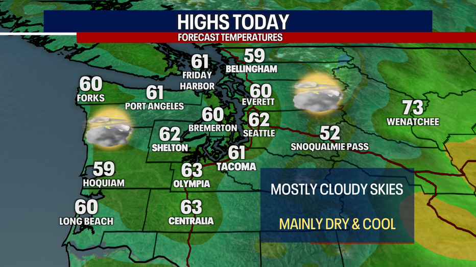 Seattle - Clouds will hang on through the afternoon Tuesday, with cool fall high temperatures.