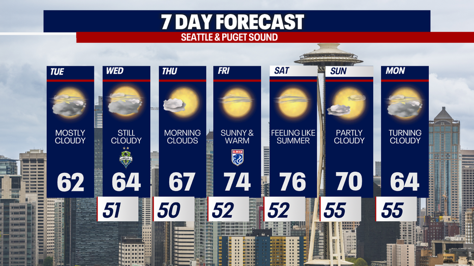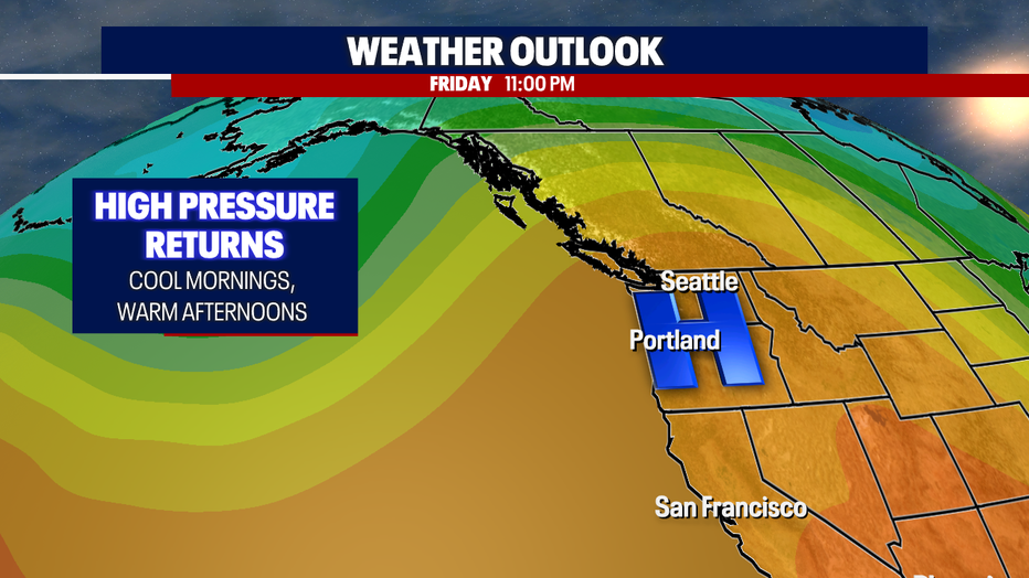 A ridge of high pressure will set up over the Pacific Northwest later this week, sending temperatures into the 70s. We could see temps in the mid to upper 70s Friday and Saturday.