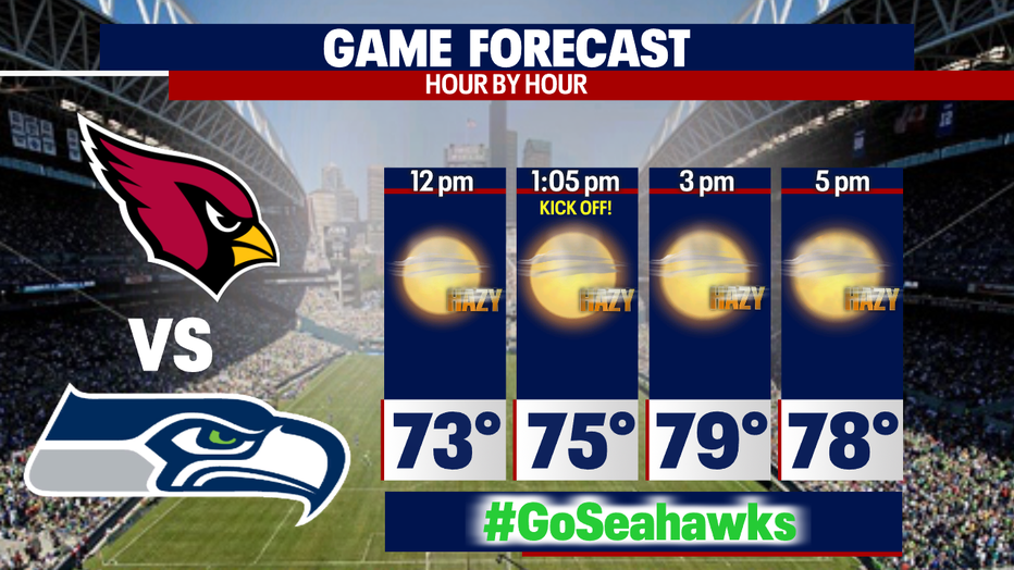 It'll be hazy for the Seahawks game today! Check out the hour-by-hour temps: