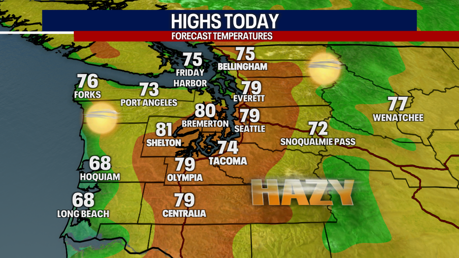 SEATTLE - Smoke continues to be a problem in Western Washington today. Air quality will improve at least a little on Monday. Until then, plan on record warmth and high fire danger.