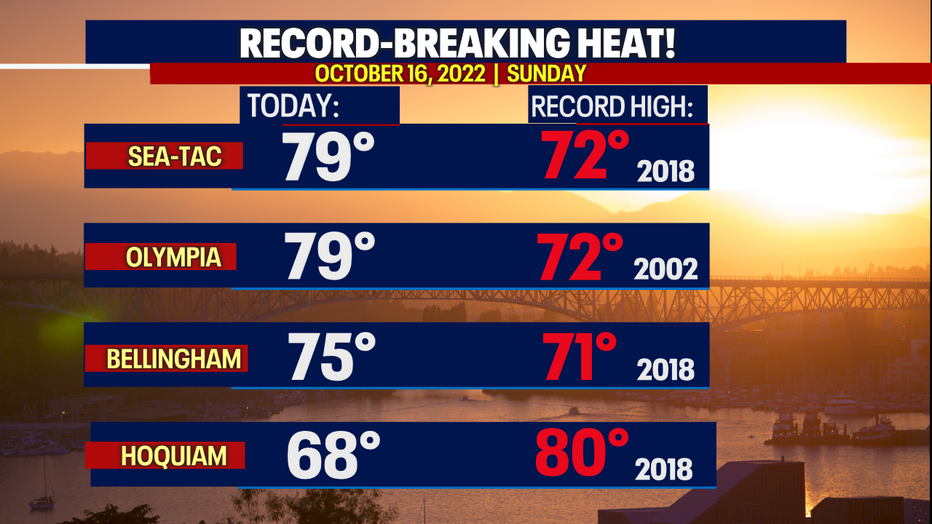 In many spots today, we're forecasting record-breaking temperatures. Sea-Tac, Olympia and Bellingham will wind up with new records for high temps today.