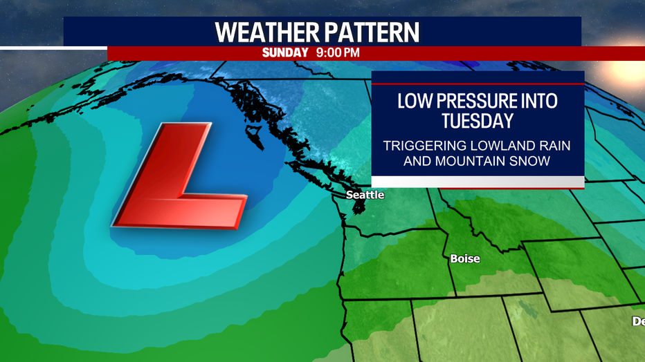 SEATTLE - Buckle up for a sloppy Sunday afternoon and evening! While the lowlands get doused with rain, the mountains will be slammed with snow tonight through Monday.