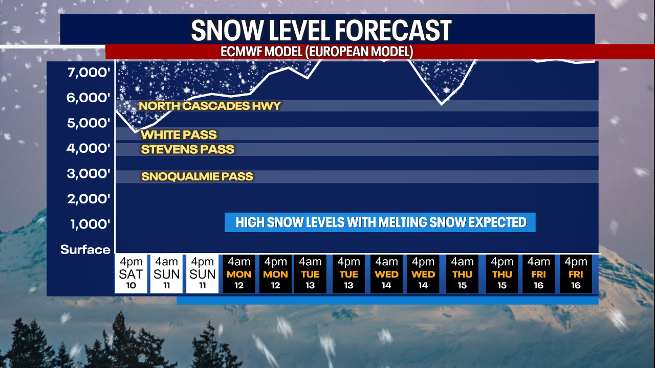 Wetter weather will develop in Seattle Sunday and Monday. (FOX 13 Seattle)
