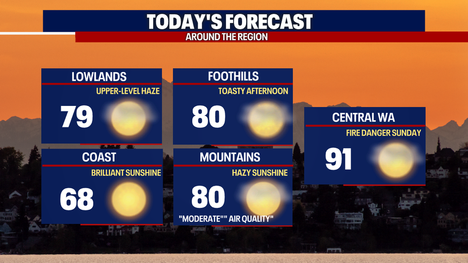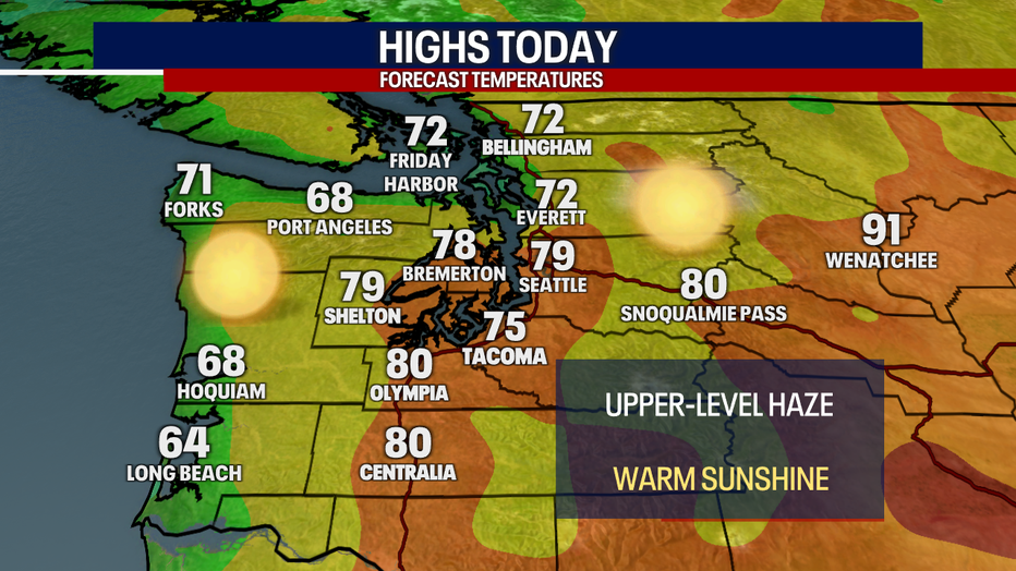 Warmer and sunnier weather is on the way for Thursday and Friday. Because northeasterly winds are possible both days, we can't rule out some smoke from pushing into Western Washington from fires burning in Canada and other parts of Washington. Stay tuned, because the extended part of the forecast has plenty of time to change.