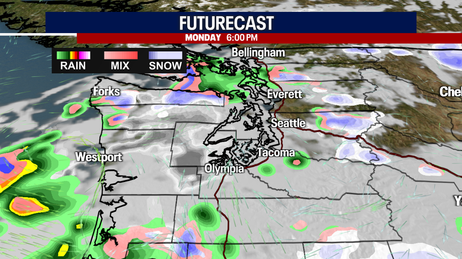 Seattle weather: Spotty rain/snow mix Monday for Western Washington