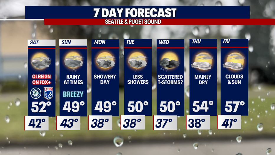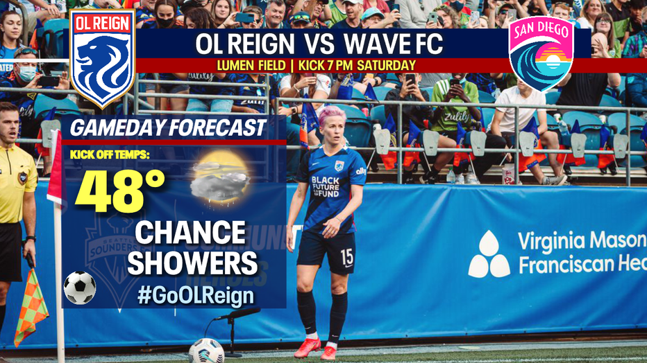 And just down the road at 7 p.m., the OL Reign open up the 2023 season at Lumen Field. As of now, our futurecast models are showing a dry kickoff with some scattered showers throughout the match against Wave FC from San Diego. #GoOLReign