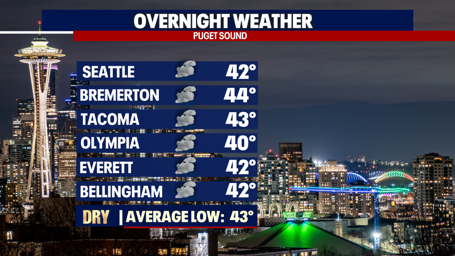 SEATTLE - A beautiful end to our Friday with highs in the upper 50s to low 60s up and down the I-5 corridor.