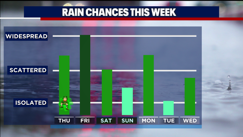 St. Patrick's Day forecast: Showers return and increase throughout the day