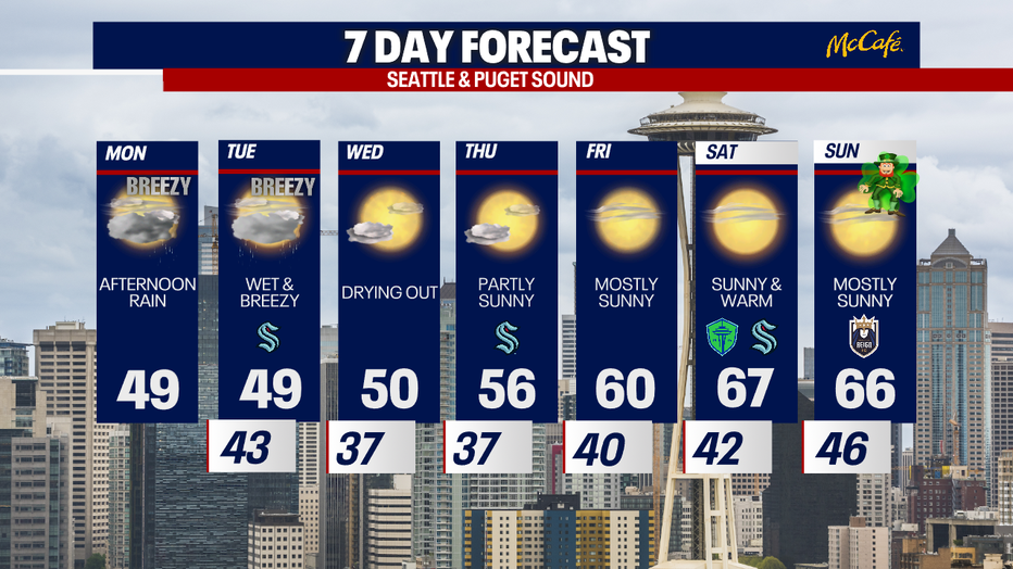 Seattle weather: Wet, breezy start to the workweek
