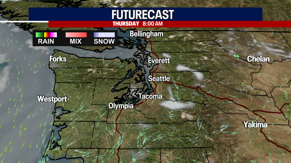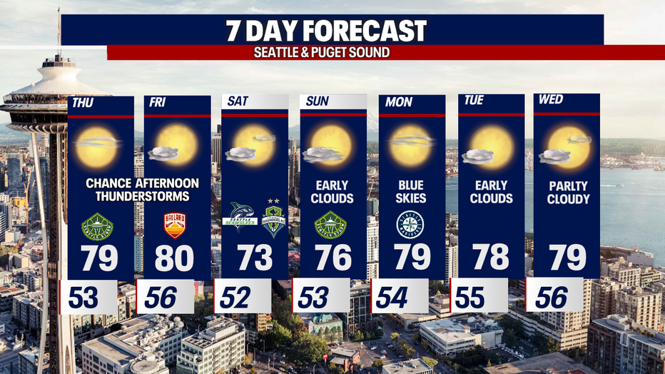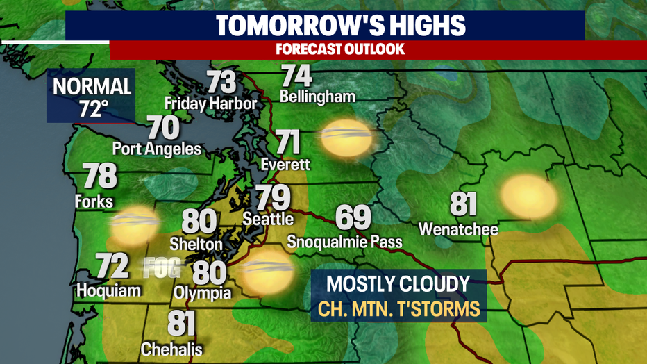 By the afternoon, we expect a chance for thunderstorms to fire up mainly over the Cascades. A few cells may push into the foothills, so stay tuned!