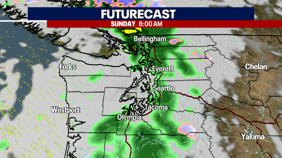 That same system will bring rain to the Puget Sound area overnight Saturday into Sunday morning. Winds will also pick up as the front moves through overnight.
