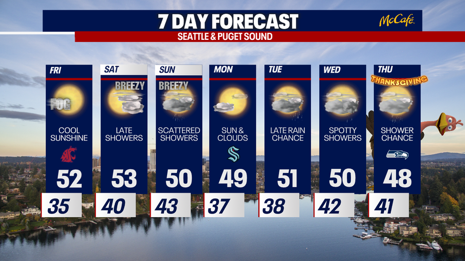 SEATTLE - After some morning fog, Western Washington is getting back to the sunshine Friday with slightly warmer temperatures.
