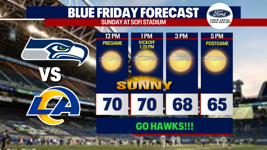 The Seattle Seahawks will take on the LA Rams on Sunday at SoFi Stadium. If you're heading to California for that matchup, the weather outside will be perfect.